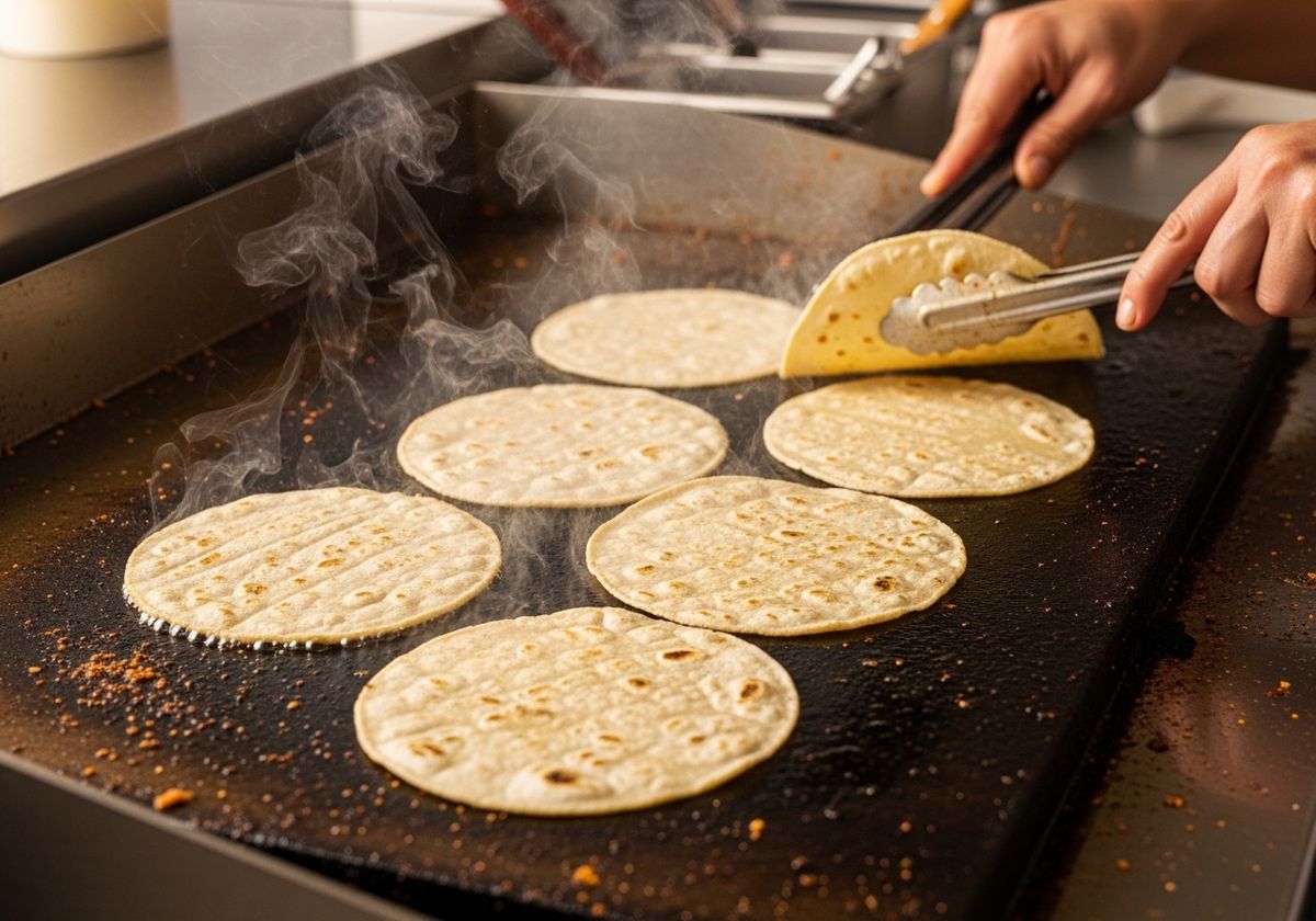 The tortilla is the foundation of any good taco. Authentic street tacos use corn tortillas, not flour. They should be heated on a flat top grill (comal) until soft and slightly toasted.
